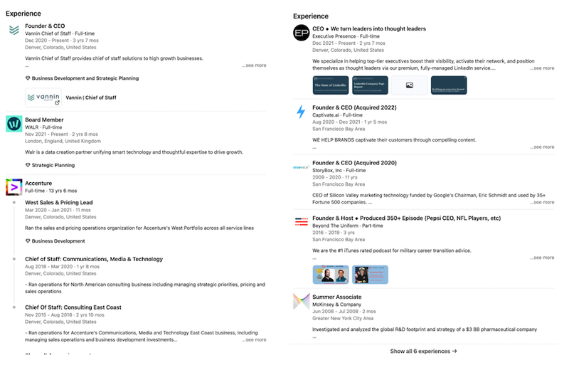 A well-detailed Experience section serves multiple purposes. Firstly, it showcases the CEO’s leadership and the company’s impact in the industry. Including a concise description of the company’s activities, mission, and key achievements helps paint a comprehensive picture for anyone visiting the profile. Success metrics, such as revenue growth, market share, or notable projects, add tangible proof of the company’s capabilities and successes, thereby boosting credibility.