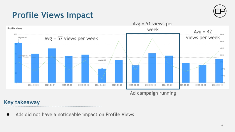 This suggests that while the ads are effective in other areas, they do not necessarily translate to direct LinkedIn profile growth.